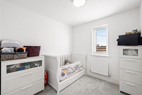 The separate living room offers a refined retreat, centred around a contemporary wide-profile feature fireplace and bathed in natural light through elegant internal shutters. For those seeking flexibility, the ground floor also includes a generous playroom, ideal for a home office or children's space.