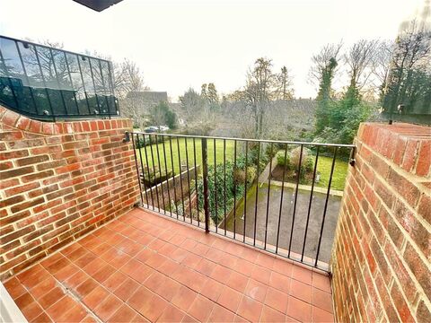 Set within a modern and select development built in the mid 2000s, this well presented first floor apartment is quietly positioned at the rear of the building, enjoying a sunny south west aspect overlooking the communal gardens. Offered chain free and recently redecorated, the property provides spacious, light-filled accommodation including a generous living room with a usable balcony, a separate contemporary fitted kitchen, two double bedrooms, and two modern bathrooms.
