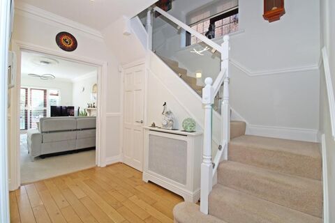 6.53m x 2.62m (21'5 x 8'7) includes large cupboard beneath stairs, French oak flooring, covered radiator, entryphone, further radiator by front door, additional area leading to kitchen