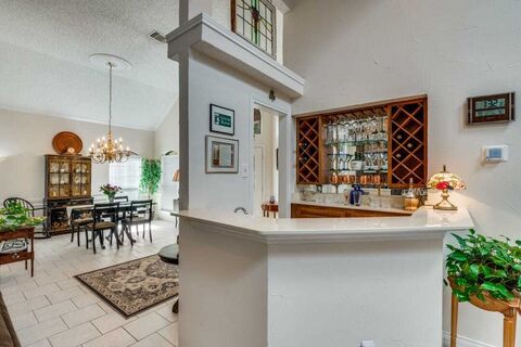ONE FOR THE MONEY - Great location in Far North Dallas. Beautifully maintained, nicely updated. No mandatory HOA. This home offers comfort, convenience, & style. Enjoy this open-air floor plan with lots of natural light. The large living room is accented by a fireplace - with gas starter - built-in shelving, and features a raised ceiling with canned lighting. Luxury vinyl flooring adds lots of warmth. The second living area could be the perfect spot for your home gym or large-screen television. Both living areas are easily served by a walk-in wet bar. The spacious kitchen has been recently remodeled with stainless steel appliances, quartz counter tops, and trendy white cabinetry - perfect for both everyday living and entertaining. The primary bedroom suite provides a peaceful retreat. The connecting bath has been thoughtfully-updated with an extra large shower, dual sinks and premium fixtures. Two additional bedrooms - split from the primary suite - offer space for a growing family, gu