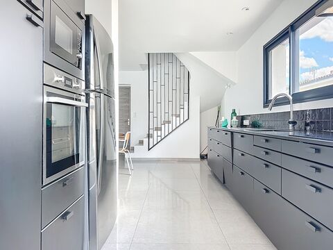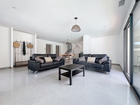 Modern comfort combined with a mediterranean lifestyle: this amazing villa in a sought-after town has it all. The property has been built with high quality materials, creating a stylish living space ready to move into. The convenient layout consists of four bedrooms, two bathrooms, and a garage. The exterior includes a dining area, an inviting swimming pool, as well as a private jeu de boules court.