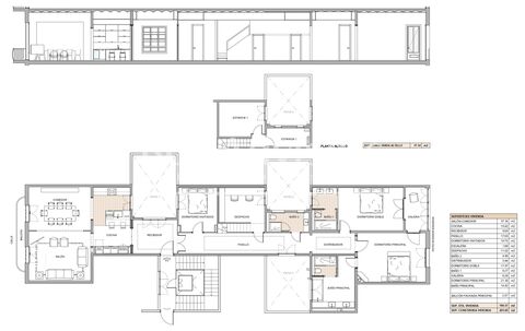 The property is on the real third floor. The property offers 205.69 sqm of apartment plus a 17.14 sqm mezzanine level, totalling 222.83 sqm built and 180.57 sqm usable area. The layout has been carefully designed to maximise space and functionality, featuring a 37.34 sqm living-dining room, a 15.62 sqm independent kitchen with peninsula, a 21.3 sqm primary bedroom with a 14 sqm en-suite bathroom, a second double bedroom of 17.97 sqm, a guest bedroom, a separate office, and three full bathrooms. The property also includes a gallery and an exterior 3.5 sqm balcony, providing natural light and ventilation.
