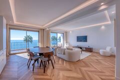 Located on the first floor, the apartment has been entirely refurbished using high-end materials, blending contemporary refinement with mountain authenticity. The bright living area features an open-plan, fully equipped kitchen and extends onto two balconies, where the south-east exposure captures morning light and uninterrupted views towards Mont Blanc.