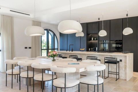The villa features a spacious, light-filled living room with an open kitchen—perfect for entertaining—a stunning master suite with sea views, and five additional spacious bedrooms, each providing absolute comfort.