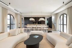 Luxuriose Ausstattungen umfassen ein privates Kino, ein Fitnessstudio, ein Buro, ein Spielzimmer, eine geschlossene Garage und einen herrlichen Pool, umgeben von Landschaftsgarten. Ein wunderschones Dachterrasse bietet einen bevorzugten Ausblick auf das Meer und ist ideal, um den Sonnenuntergang zu bewundern und unvergessliche Momente zu erleben.