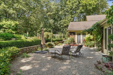 This stunning contemporary ranch blends refined design with effortless comfort. The heart of the home is a high-end chef's kitchen featuring sleek finishes, premium appliances, and elegant open shelving. The kitchen flows seamlessly into a formal dining room with built ins an expansive living room/ FPL with vaulted ceilings. French doors open gracefully to beautifully landscaped gardens.A warm and inviting family room with a stone FPL provides the perfect setting for cozy evenings.The renovate primary suite is a true retreat, complete with spa-inspired bath and steam shower showcasing luxurious finishes and thoughtful design.Three additional bedrooms and one with a private bath offers flexibility for guests , while a dedicated office provides an ideal work from home space.Adding exceptional value and versatility a separate legal cottage offers its own private haven.With a living room with high ceilings a kitchen area, stairs to a loft bedroom with bath, washer and dryer and d