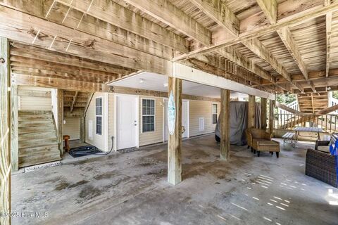 Just Minutes from the Sand in Oak Island, this nearly 3,000 sq. ft. home offers the perfect blend of space, flexibility, and coastal charm. Featuring oversized rooms throughout and four bedrooms, four full bathrooms, this property is designed with comfort and versatility in mind. The first floor could also functions as its own two-bedroom apartment or in-law suite with a private entrance, deal for extended families, guests, or rental income potential. Upstairs, you'll find expansive living spaces, a well-appointed kitchen, and a huge screened-in patio perfect for entertaining or enjoying the salty breeze.Fully furnished, this home is move-in ready and a negotiable six-person golf cart to cruise the island with ease. With no HOA, you'll enjoy freedom from extra fees and restrictions. Located just moments from Middleton Park and close enough to the beach to smell the salt air, this property would make a fantastic primary residence or an investment opportunity as a 6 BEDROOM beach ren
