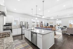 Welcome to your ideal one-story retreat in the prestigious Waterford Point of The Tribute. This home offers numerous upgrades and an open, inviting floor plan designed for both everyday living and entertaining. Beautiful wood flooring, designer lighting, and abundant natural light create a warm and welcoming feel throughout. The stunning kitchen features white cabinetry, upgraded granite countertops, a gas cooktop, and an oversized island, all opening seamlessly to the spacious living area with an extended layout and cozy fireplace, perfect for gathering with family and friends. A private office with French doors provides an ideal work-from-home space, craft room, or home gym. The primary suite is a relaxing retreat with wall of windows overlooking the backyard and a spa-like bathroom featuring a generous walk-in shower, dual sinks, vanity, and convenient access to the adjoining utility room. The thoughtful split-bedroom floor plan includes a secondary bedroom and full bath near the en