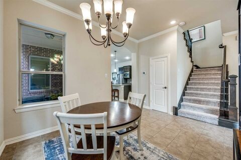 Beautifully designed David Weekleyhome in the highly sought-after Villas of Escena, offering modern elegance, thoughtful functionality, and low-maintenance living in a prime central metroplex location. Filled with natural light from expansive windows, the airy open floor plan creates a warm and inviting atmosphere throughout. The spacious living area flows seamlessly into a chef-inspired kitchen featuring a large island, granite countertops, stainless steel appliances, a gas cooktop, and abundant cabinetryperfect for both everyday living and effortless entertaining. With two generous living areas and two versatile dining spaces, this home provides flexibility for gatherings or quiet evenings. The well-designed layout also includes a first-floor private office, or flex space, with French Doors and a half bath. Upstairs, youll find two secondary bedrooms, a game room or flex living space, and a spacious primary retreat with extra space for a separate sitting area. The primary bath off