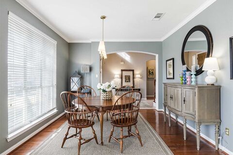 Southern Living charm!! Pretty drive up to this Highland built home in desirable Pine Ridge Estates! Inside you will find stacked formals, open kitchen to family and private primary suite! Upstairs are 3 bedrooms , 2 baths and spacious game-media room! Wood floors on lower level and stairs, neutral paints and updated tile! Kitchen has white cabinets. granite, and spacious island! Upgraded hardware and lighting throughout! Pool sized backyard with extended patio and plenty of space to play! Conveniently located 2 doors down from community pool! Easy access to parks, 121 and shopping! Move in condition!