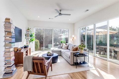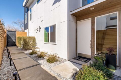 Experience the perfect blend of functionality, luxury, and modern urban living! This beautifully designed, move-in ready contemporary single family attached home features 3 bedrooms and 3 baths with upgrades galore and an open-concept layout ideal for everyday living and entertaining. Upgraded white oak hardwood floors run throughout the home, complemented by expansive floor to ceiling windows that bathe the interior with natural light. The gourmet kitchen impresses with custom cabinetry, double waterfall quartz island with bar seating, KitchenAid appliances, and a dedicated coffee bar with wine refrigerator, all seamlessly flowing into the spacious living and dining areas. Its an entertainers delight. Upstairs, the primary suite offers a private retreat with custom remote-control blackout shades, a spa-inspired bath with an oversized shower and a generous walk-in closet. An additional upstairs bedroom with ensuite bath provides flexible living space, while the downstairs bedroom wit