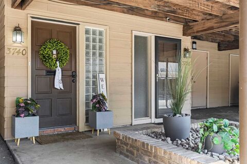 Discover this light, bright, and open 2-bedroom condo with a study nestled in the heart of Addison, just a short walk to the scenic trails and vibrant events of Vitruvian Park and within quick reach of the recreational amenities at the Addison Athletic Club. Enjoy close proximity to pickleball courts, basketball courts, walking paths, and the dining and entertainment of Addison Circle, with the prestigious Brookhaven Country Club just minutes away. The condo features covered parking with an attached storage area directly in front of the unit for added convenience. Inside, a welcoming entryway opens to a spacious living room highlighted by a cozy fireplace, built-ins, and wood-look tile flooring throughout the main level. The updated kitchen is a standout, complete with a gas range, quartz-topped island with eat-at bar, and ample cabinetry, perfect for cooking and entertaining. A dedicated laundry room, generous walk-in closets, and fresh 2025 interior paint enhance everyday comfort. Th
