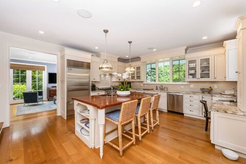 Welcome to 3 Bittersweet Trail, a hidden gem nestled in the heart of Rowayton. This beautifully renovated home, crafted by the esteemed Fox Hill Builders, offers the perfect balance of timeless charm and modern sophistication. With 4 spacious bedrooms and 3.5 luxurious baths, the layout is both functional and elegant-designed for everyday living and effortless entertaining. The kitchen was refreshed over the winter with new quartz countertops, and much of the home has been freshly painted and thoughtfully updated, giving the interiors a bright, crisp feel. Set on over half an acre-a true rarity in 06853-this property is a private sanctuary framed by meticulously curated landscaping, mature trees, and seasonal blooms. Whether you're hosting gatherings on the expansive patio, relaxing by any of the 3 fireplaces, or simply enjoying the serenity of your surroundings, this home elevates indoor-outdoor living year-round. Located on a quiet cul-de-sac just moments from the village, beach,