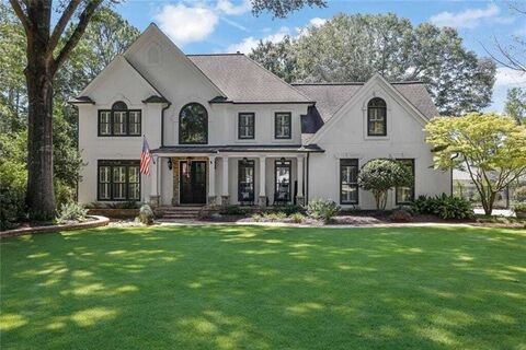 Every so often, a truly exceptional home comes to market in Inverness, one of the most coveted swim/tennis communities in Roswelland 4045 Inverness Crossing is that home. With a new roof and Andersen windows, this residence radiates storybook charm from the moment you arrive. Set on one of the finest lots in the neighborhood, an expansive, level front lawn and inviting flagstone porch overlook a rare, level cul-de-sacan idyllic setting for bikes, ballgames, and long evenings with neighbors. The backyard is equally enchanting. A custom outdoor kitchen, generous patio, and heated 12-seat PebbleTec saltwater spa pool create a private retreat designed for year-round enjoyment. Lush landscaping surrounds the space, while a spectacular covered porch with tongue-and-groove wood ceiling and wood-burning stone fireplace seamlessly extends the home outdoors. Game days, celebrations, and quiet evenings by the fire all feel at home here. Inside, double glass entry doors open to a soaring two-sto