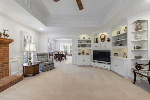 This impeccably maintained, all brick home is located in the highly desirable Brickleberry neighborhood just minutes away from Canton Street and downtown Roswell. A rare basement home, with the master on main suite features updated bath with walk in shower, two walk-in closets with custom shelving and a bay window overlooking the private backyard and a tranquil pond. Move-in ready, this home has been freshly painted, with thoughtful updates throughout including built in cabinetry, plantation shutters and renovated baths. The sunroom is flooded with natural light and provides the perfect place to relax and entertain friends or simply enjoy the surrounding natural beauty. Two additional bedrooms and a full bath on the upper level give you space for additional family members or overnight guests. Also upstairs you will be delighted with the perfect little space for an office nook! This rare lot includes a full unfinished basement (stubbed for a bath), making it the ideal location if you