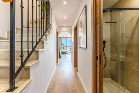 Refurbished Spanish Townhouse with Panoramic Views | Los Arqueros, Benahavis This beautifully refurbished Spanish townhouse blends timeless charm with sleek modern design. The interiors have been thoughtfully reimagined to create an open plan kitchen and living area, enhanced by floor-to-ceiling glass doors that connect seamlessly to the terraces and outdoor spaces. With a south-facing orientation, the home is filled with natural light throughout the day. From the terraces, breathtaking views stretch across the Marbella and Estepona coastline towards Gibraltar, framed by dramatic mountain scenery. The surrounding land is protected, guaranteeing uninterrupted sea and mountain vistas for years to come. Ideally located within walking distance of Los Arqueros Golf, residents also enjoy easy access to local amenities including a bowling alley, restaurant and gym. The property offers 110 m2 of interior living space, complemented by 33 m2 of terraces designed for outdoor living and a 28 m2 garage with storage. A rare opportunity to secure a stylish modern home with classic Spanish character in a privileged setting.