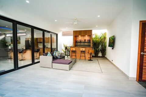 This is a standalone, non-estate villa set within a quiet residential area of Rawai. As a result, it offers greater privacy and independence compared to managed estates.