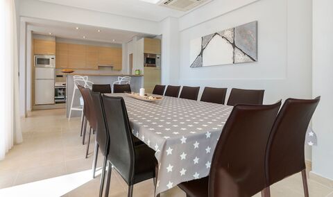 Flat I-II B: living-dining room with open kitchen, 3 bedrooms, 2 bathrooms and covered terrace with direct access to the pool.