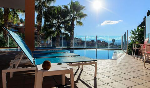 The apartments are located in a private residential area, with heated swimming pool and outdoor bathroom. Large parking area.