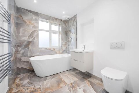 The Address is delighted to offer this fully refurbished four bedroom extended end of terrace house. Offering off street parking for 3 cars to the front, side access and ample parking on the street. The ground floor features a bright and spacious reception room to the front. To the rear is a large open plan kitchen diner. The kitchen finished in sage green features integrated dishwasher, oven, electric hob with extractor hidden with the island. The extension features two large sky lights with inset led strip lighting along whilst Crittall doors finish off the room with access to the garden. There is also a downstairs WC.