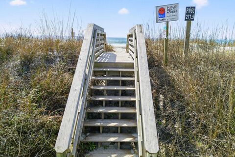 Enjoy the sweeping, unobstructed coastline views from this beautifully maintained 4-bedroom, 3-bath beach home, ideally positioned on a prime corner lot with the sand in front of your home.The main level is designed for gathering -- a bright, open great room flows seamlessly into the kitchen, featuring newer appliances, abundant counter space, and generous storage. Step onto the deck and enjoy front-row seats to passing dolphins, rolling surf, and beach activity. When finished with the beach come home to the oversized pool with furnished deck area with an outside shower. Upstairs, a second primary suite offers a private bath and direct access to an upper deck -- the perfect spot for sunrise coffee or evening coastal breezes. Two additional bedrooms share a well-appointed hall bath, while a versatile flex space serves beautifully as a game room, media lounge, or additional guest area. Additional highlights include: Elevator access from the garage to the top floor, One-bay garage