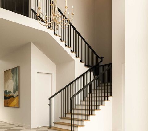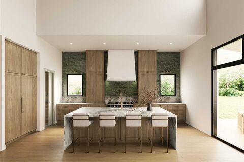 Welcome to this exceptional residence on a premier street in Midway Hollow where timeless architecture meets refined contemporary living. This thoughtfully designed home offers expansive open spaces, soaring ceilings, and high-end finishes throughout, creating a sophisticated yet comfortable environment ideal for everyday living and entertaining. From the moment you enter, you are greeted by a dramatic two-story foyer featuring a striking staircase with black iron balusters, and a statement chandelier that sets the tone for the homes elevated design.Open-concept living and large dining area are anchored by a designer fireplace and framed by large windows that flood the space with natural light. The chefs kitchen is a true showpiecefeaturing custom cabinetry, a stunning island, premium appliances, designer lighting, and an oversized walk-in pantry, prep kitchen for effortless entertaining. The luxurious primary suite offers a serene retreat with views of the backyard, a spa-inspire