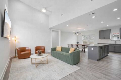 Modern contemporary living in one of Dallas vibrant and rapidly growing areas! This stylish 3-bedroom, 2-bath home at 4415 Jamaica St. features an open-concept layout with soaring vaulted ceilings that create a bright, airy feel throughout the main living spaces. The sleek design blends comfort and functionality, making it perfect for both everyday living and entertaining. The spacious kitchen flows seamlessly into the living and dining areas, enhancing the homes modern appeal. Energy efficiency meets convenience with paid-off solar panels, helping reduce utility costs, while the EV charger in the two-car garage makes electric vehicle ownership effortless. Thoughtfully designed with contemporary finishes and abundant natural light, this home offers modern style in a dynamic, up-and-coming Dallas neighborhood close to dining, entertainment, and city conveniences.