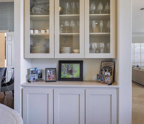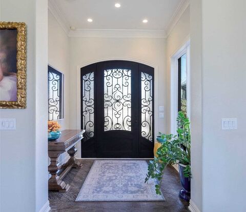 Timeless Elegance and Modern Luxury in Windhaven! Discover this exquisite, meticulously maintained residence in the heart of Windhaven, where sophisticated design meets everyday comfort. From the striking large wrought-iron entry door, you are welcomed into a bright living room featuring enormous windows, custom built-in cabinetry, and charming bench seating. The seamless flow leads to a formal dining room served by a classic butlers pantry, perfect for hosting. The heart of the home is the stunning updated gourmet kitchen, boasting sleek quartz countertops, dual sinks, high-end stainless steel appliances, and abundant storage. Relax in the den, anchored by a sleek marble fireplace and a wet bar, where a wall of windows offers a seamless transition to the outdoor oasis. The primary retreat is a true sanctuary with a private sitting area, direct outdoor access, and an extra closet. Its spa-like updated bath features a freestanding soaking tub, a large walk-in shower, and a custom walk-