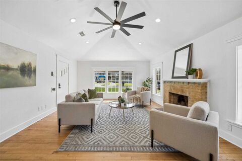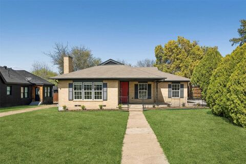 Recently updated and full of character, this charming home in the coveted Dells District of Oak Cliff blends timeless architecture w thoughtful modern touches. Fresh landscaping, an inviting covered porch & vibrant front doors create a memorable first impression. Inside, refinished original hardwoods & fresh paint highlight a light-filled living area anchored by a cozy fireplace, flowing seamlessly into the dining space & reimagined kitchen featuring new cabinetry, granite counters, stainless appliances & classic subway tile backsplash. The spacious primary suite offers a quiet retreat, while secondary bedrooms provide flexibility for guests or family. The beautifully remodeled guest bath features quartz counters, timeless black & white hex tile floors & a sleek walk-in shower. A thoughtfully added flex spaceideal for a home officefeatures classic Saltillo tile & French doors that open to the backyard, bringing in natural light & easy indoor-outdoor flow. Generous backyard, dog run &
