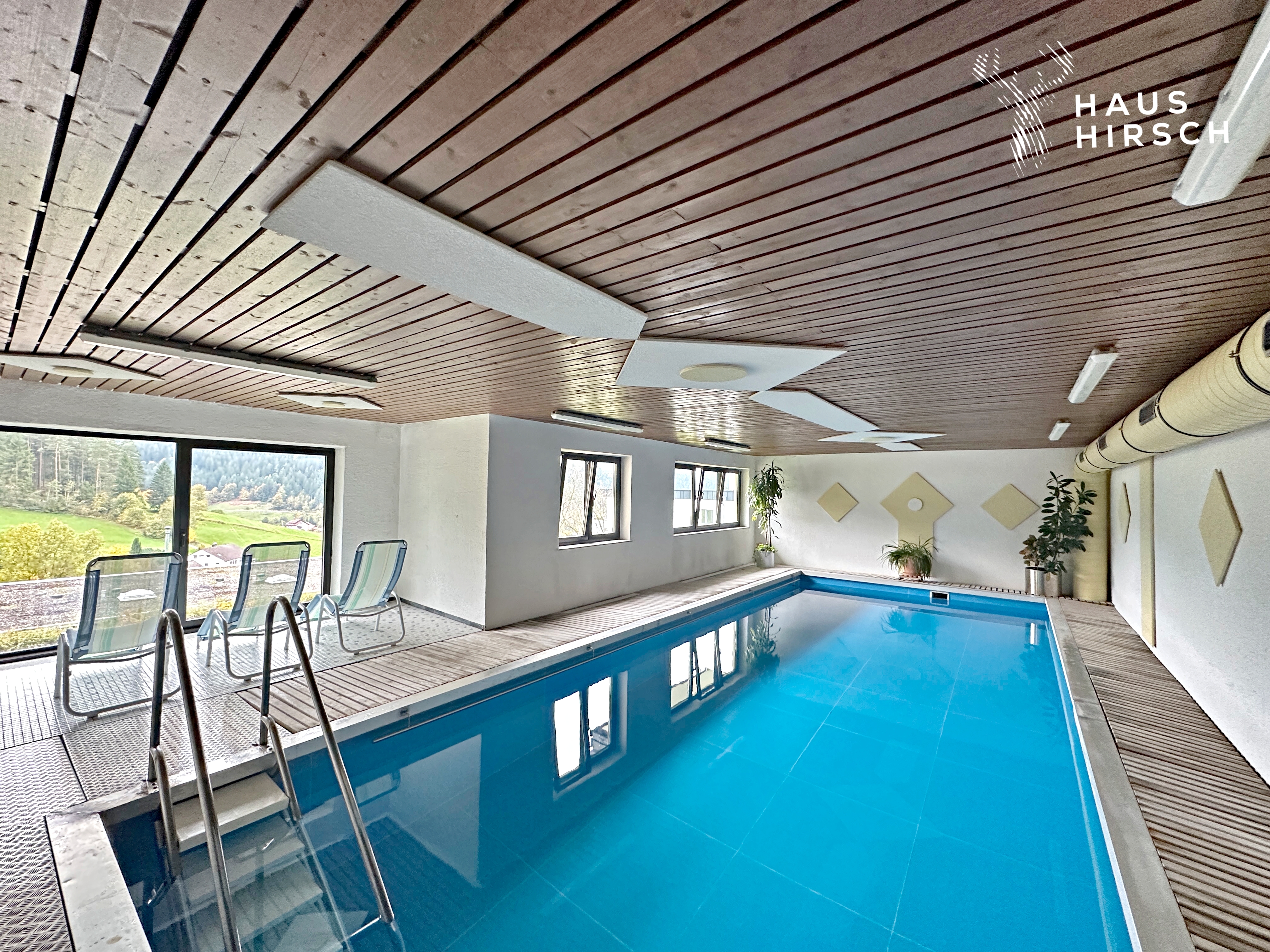 Gemeinsamer innenpool mit harmonischer Aussicht und einer Sauna laden zur taglichen entspannung ein.
