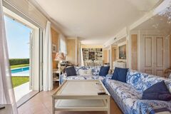 The outdoor areas invite relaxation, with a magnificent swimming pool surrounded by a sun-drenched terrace, ideal for admiring sunsets over the Mediterranean.