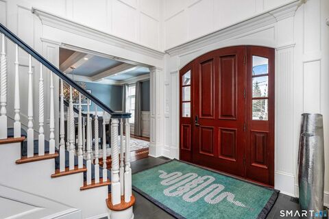 Welcome to 473 Hollow Tree Ridge Road in Darien - a custom built, stone and shingle Colonial set on 1.3 professionally landscaped acres offering exceptional indoor and outdoor living. This 5-bedroom smart home blends timeless architecture with extensive upgrades and modern technology throughout. The resort-style backyard features a pool with spa, pool house with nano doors, outdoor shower, custom outdoor bar, Lynx grill, fireplace, and covered patio. A slate roof, horseshoe driveway, whole-house 25kW Generac generator, and oversized 3-car garage with heated epoxy floors, built-ins, and wainscoting provide both convenience and peace of mind. The fully remodeled kitchen includes a Wolf range, additional wall oven, Sub-Zero double refrigerator/freezer, double islands with prep sink and second dishwasher, Negresco granite and quartz countertops, island seating, and a wet bar with glass dishwasher and ice maker. A paneled office, homework stations, guest/au pair suite with private access, o