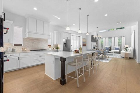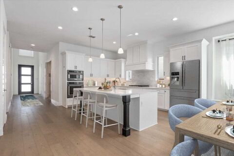 Tucked inside the private gated enclave of Westworth Falls, this stunning 2022 Shaddock-built residence offers exceptional space, refined design, and rare direct access to the Trinity River Trail.The home features a highly functional floor plan with five bedrooms, four full baths, a private office, media room, and an expansive upstairs game room. The open-concept main living area is filled with natural light and anchored by a chefs kitchen with quartz countertops, upgraded built-in appliances, custom cabinetry, and a large island that flows seamlessly into the dining and living spaces. A gas-log fireplace and beautiful wood floors add character and comfort, while walls of windows overlook the covered patio and backyard.The main-level primary suite offers a peaceful retreat with a spa-inspired bath featuring a soaking tub, oversized shower, dual vanities, and a spacious walk-in closet. A secondary bedroom with a full bath on the first floor provides ideal guest or multigenerati
