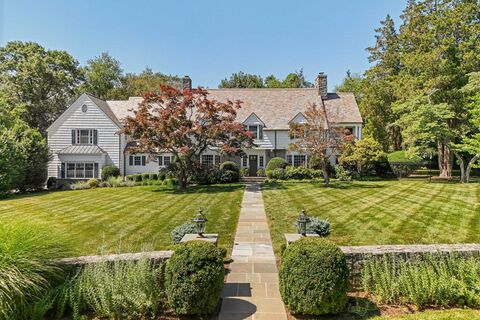 Welcome to 66 Stanton Road. Set on 1.34 landscaped acres, this classic 1938 clapboard colonial blends architectural charm with thoughtful updates, including a full renovation and expansion completed in 2009. Designed for effortless living and entertaining, the home offers refined formal rooms and relaxed gathering spaces. A gracious foyer with sweeping curved staircase is flanked by sunlit living and dining rooms. The open kitchen and family room anchor the home, featuring Wolf and Sub-Zero appliances, double ovens, a walnut island, generous pantry, and casual dining area. A vaulted, wood-paneled family room with exposed beams, fireplace, and a wall of windows overlooks the backyard. A wet bar with second dishwasher and built-in desk sits just off the kitchen. Upstairs, the spacious primary suite offers a vaulted ceiling, dressing area, reading porch, and spa-like bath with steam shower and soaking tub. Five additional bedrooms include two en suites and a Jack-and-Jill layout, plus a f