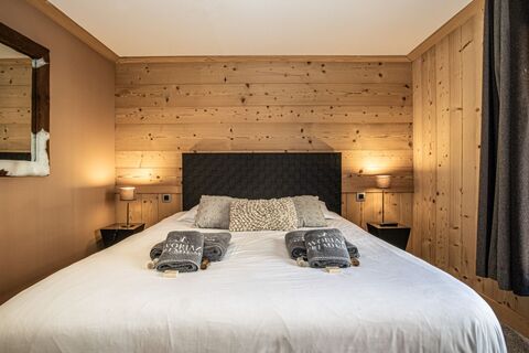 Located in the centre of the pedestrianised resort of Avoriaz, in the Ruches district, this exceptional 338 m2 chalet sleeps up to 16 people. it comprises 11 rooms spread over three half levels to the east and two levels to the west. it has 8 bedrooms, 5 shower rooms and 4 WCs. The chalet has two separate entrances, one of which has a vestibule with a shoe dryer and dressing room. The double aspect living room, with its central fireplace and two terraces, offers a warm and comfortable living space. The modern, fully-equipped kitchen opens onto a dining room with a large dining table.