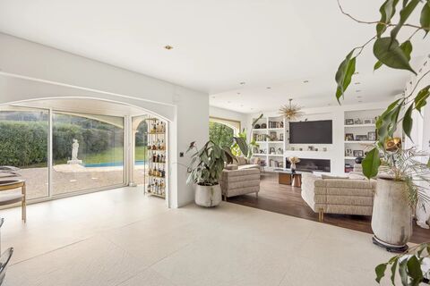 Located in a sought-after residential area of Roquefort-les-Pins, close to amenities, schools, and the town center, this Provencal-style contemporary villa is distinguished by its peaceful surroundings and open views over greenery.