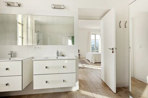 im zweiten Stock befinden sich vier Dachgeschoss-Schlafzimmer, jedes mit eigenem Badezimmer, fur Privatsphare und Komfort.