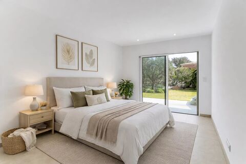 Das Erdgeschoss umfasst drei Schlafzimmer, jedes mit eigenem Duschbad oder Badezimmer, was den Bewohnern Privatsphare und Komfort garantiert. Ein Waschraum sowie eine Garage vervollstandigen diese Etage.
