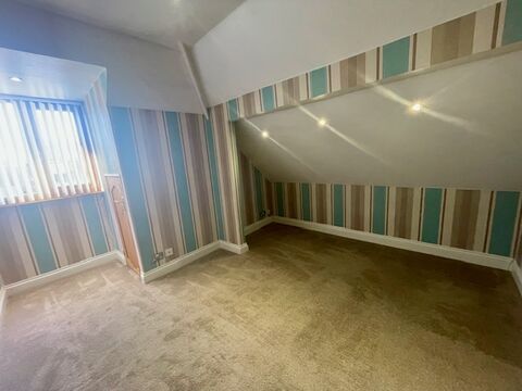 Bedroom 4 24’ (into eaves) x 12’ 3” Timber laminate flooring.