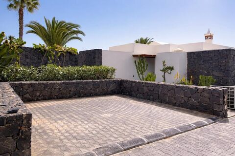 Outside, the south-facing garden enjoys sunshine throughout the day. A private pool is set within the garden, ready to be enjoyed year-round. A jacuzzi adds an extra touch of relaxation, while the terrace offers the perfect space for al fresco dining, sunset drinks, or simply unwinding under the Lanzarote sky.