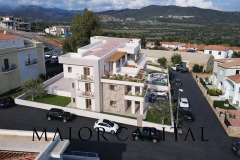 In the center of Budoni, in a strategic location that combines the convenience of nearby services with proximity to the sea, we offer for sale, within a new and modern residential complex, a newly built four-room apartment located on the ground floor. The property is just 1.5 km from the beautiful beaches of the area and within walking distance of the town center, allowing easy access to shops, restaurants, and all main services. The property stands out for its bright interiors, modern lines, and a layout designed to ensure comfort and functionality. The living area consists of a living room with open-plan kitchen, a welcoming space that opens onto a comfortable covered veranda, ideal for outdoor dining and social moments during the warmer months. The sleeping area includes three bedrooms, one of which is a master bedroom with en suite bathroom, as well as a second service bathroom, offering a practical and comfortable living solution, perfect for families or those who enjoy hostin...