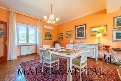 Set on a hillside with unobstructed views of Mount Limbara, we are offering a detached villa surrounded by greenery, ideal for those seeking peace and quiet, privacy and spacious living areas. The house is surrounded on all sides by a private garden, ensuring privacy and a pleasant natural setting. The property is spread over two levels. The main floor opens onto a spacious living room with a dining area, a bright and welcoming space, enhanced by warm-toned walls and views of the surrounding greenery. The dining room leads to the separate, functional eat-in kitchen, with a window providing natural light throughout the day. A few steps lead up to the well-separated sleeping area, consisting of three spacious and bright double bedrooms, as well as a fourth versatile bedroom. Some rooms have French windows with direct access to the outside or to the balcony, from which one can enjoy a pleasant view of the countryside. There are two bathrooms: a larger one with a bath and a window, an...