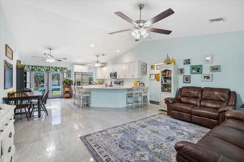 Just Listed in Vero Lake Estates! Built in 2023, this immaculate 3/2/2 offers modern living with a split floor plan and spacious bedrooms (11x13 & 14x20). Stunning 20x42 tile flows throughout. The designer kitchen features quartz countertops and soft-close cabinetry, with matching finishes in both baths. Enjoy impact windows, an inside utility room with sink, and an owned water softener. Meticulously maintained and move-in ready. Best of allNO HOA. Live freely in this beautiful Vero Beach home! rmszappr&sub2err