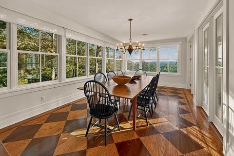 Set high above the surrounding landscape, this Garrison retreat offers a rare combination of privacy, natural beauty, and modern comfort across 5.3 acres of park-like grounds, bordered by state land. With its soaring ceilings, warm wood finishes, and sweeping Hudson River views, the home feels both expansive and deeply welcomingan ideal setting for everyday living or a weekend escape.Double barn doors open to a covered porch entry, the main level flows naturally, anchored by a dramatic living room with a floor-to-ceiling stone fireplace. The formal dining room and covered porch capture wide-open views of the Hudson Highlands, while the kitchenequipped with Miele and Viking appliancesconnects easily to the deck for outdoor dining and entertaining. A nearby media room offers a comfortable, tucked-away space to relax.Upstairs, French doors lead to a private balcony, ideal for morning coffee or evening stargazing. The primary suite serves as a true retreat, featuring vaulted ceilings
