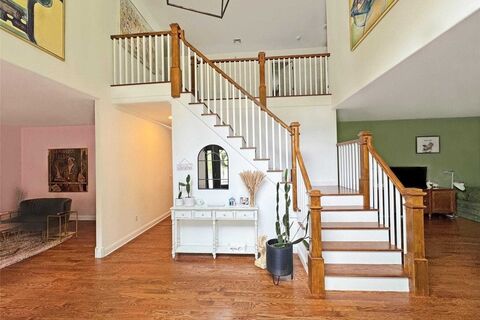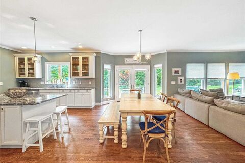 A timeless and expansive 4 bedroom, 3 bathroom home with luxuriously modern sophistication awaits! This elegantly distinguished home sits on 3.42 lush acres with a meandering creek, picturesque landscaping and for all of your al fresco and hosting desires; a stone patio with both a built-in fire pit and grill overlooking the vast, well manicured backyard and woodland! The charm and finesse continues upon entering through the set of front doors, taking in the grand two-story foyer, where a dramatic Palladian window floods the space with natural light and the hardwood floors gleam welcomingly. The main level encompasses an exquisite gourmet kitchen that dazzles with granite countertops, island, double ovens, stainless steel appliances, a wine refrigerator and walk-in pantry - every culinary desire thoughtfully orchestrated. Both the living room and formal dining room have gas fireplaces that create a cozy ambiance. For those seeking multi-generational use, there are two main level flex r