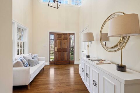 An extraordinary opportunity to own a private, resort-like retreat in the heart of Rye, set on .88 acres of spectacular park-like grounds with a tranquil waterfall. Effectively rebuilt and extensively expanded in 2007, including the addition of a full second story, the home was thoughtfully designed for modern living with generous room proportions and a highly flexible layout. The first-floor primary suite is a luxurious retreat with walk-in closet and spa bath featuring a steam shower, soaking tub and doors to private deck, all overlooking the deep and private backyard where your view is entirely natural greenery. A second ensuite bedroom on the main level provides ideal accommodations for guests or extended family. or a huge home Gym or nursery. A dramatic double-height entry foyer opens to beautifully scaled living spaces including a living room with fireplace, spacious family room, and bright breakfast area adjoining the well-appointed kitchen with island seating, desk area, high