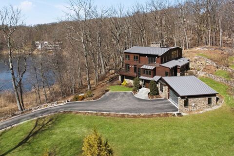 Modern Luxury Meets Lakeside Serenity. Experience a rare blend of privacy and year-round recreation in this custom-built Armonk home set directly on the waters edge. Designed for effortless living, it offers kayaking, swimming, and peaceful mornings from your private dock. Outdoors, a lakeside fire pit, outdoor shower, and secluded hot tub are framed by panoramic water views. The home is thoughtfully designed to blur the line between indoors and out. Floor-to-ceiling windows and bi-fold glass doors open to expansive decking and striking dry-stack stonework, creating seamless flow. Inside, wide-plank flooring and a dramatic two-story great room with a floor-to-ceiling stone fireplace establish a warm, refined atmosphere. The space connects to a chefs kitchen with premium appliances, walk-in pantry, and wine refrigerator. The primary suite is a private retreat with its own fireplace, deck access, and spa-like bath. Upstairs, three bedrooms surround a flexible lounge ideal for a media r