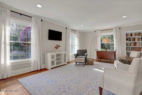 Set on a beautifully maintained property in the heart of Wilmington, 1802 Hawthorne Road offers a thoughtful layout, inviting living spaces, and a home designed for both everyday living and entertaining. This well-appointed home features 4 bedrooms, 3 full bathrooms, and 1 half bath, with the primary suite conveniently located on the first floor. As you enter, you're welcomed by a bright foyer featuring a new wool entry rug and coordinating stair runner, setting the tone for the warm, well-cared-for spaces throughout. At the front of the home, the living room and formal dining room provide classic gathering spaces perfect for hosting friends and family. The kitchen serves as the heart of the home, complete with custom cabinetry, an oversized island, stainless steel appliances, and a cozy eat-in dining nook. Just beyond, the family room features a gas fireplace and large windows that fill the space with natural light while overlooking the backyard. Tucked away on the first floor for add
