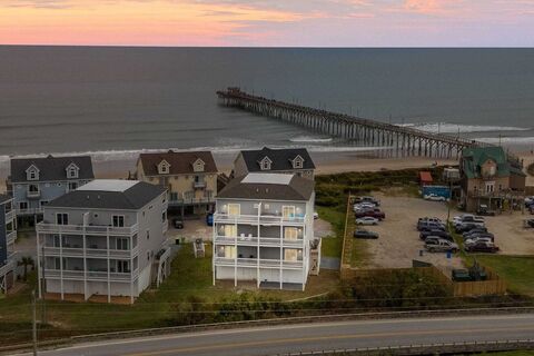 This premium fully furnished end unit of the Topsail Wynds subdivision stands above the rest with the best views, an 8 foot island in the kitchen where the other units only have a 6 foot countertop, a 6-person hot tub on the top balcony just off the kitchen, and the garage has been converted into and entertainment area complete with bar, ping pong table and more!With two primary suites and four other bedrooms it easily sleeps more than a dozen, and generates $55-65k in annual rental income. Conveniently located right next to the Seaview Fishing Pier allows for convent access for the fishing enthusiasts, and the private beach access just steps away makes it easy to enjoy the salt, sand and sea. With six balconies and vast windows everywhere you turn, the breathtaking views of the ocean and intercoastal waterway are endless. This turnkey opportunity is your chance to own a luxury piece of paradise!!