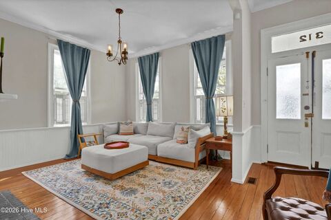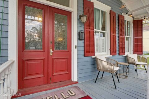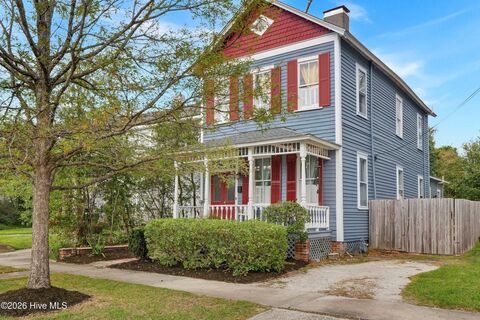 Welcome to the Daniel Howard House, a beautifully preserved 3-bedroom, 2-bath historic home nestled on the northside of downtown. With convenient access to the Soda Pop and Brooklyn Arts Districts, Live Oak Bank Amphitheatre, and the Wilson Center, this home offers over a century of character paired with thoughtful updates and modern comforts.From the covered front porch, step into the main living space where 11-foot ceilings and rich hardwood floors welcome you inside. A double-sided masonry fireplace is the focal point between the living and dining areas. The updated kitchen is designed for both everyday living and entertaining, featuring stainless steel appliances, a gas range, and a breakfast nook perfect for morning coffee. A spacious laundry room, a recently renovated full bathroom (2023), and a mudroom/flex space complete the main level.Upstairs, you'll find generously sized bedrooms with tall ceilings, another remodeled full bathroom, and a landing perfect for a home office